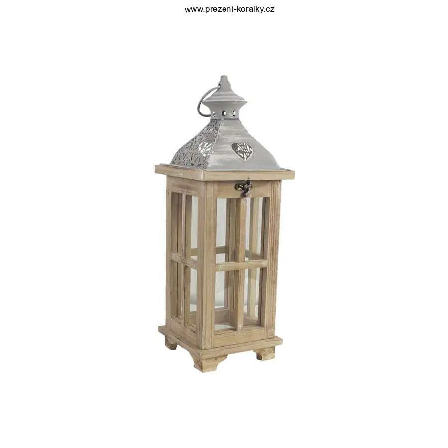 Tato moderní lucerna je laděná do bílé a hnědé barvy a je vyrobená ze skla a dřeva. Stříška lucerny je zdobená originálním motivem. Tato lucerna je vysoká 42 cm, široká je 15,5 cm. Lucerna zaručeně naladí atmosféru Vánoc v každé domácnosti.
