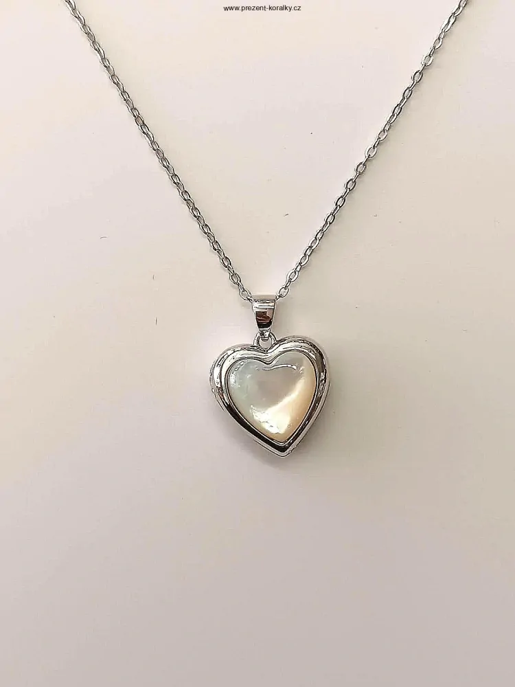- Stříbrný otevírací náhrdelník – srdce s perletí
