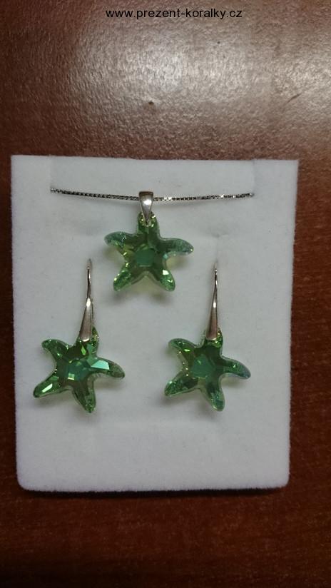 - SWAROVSKI stříbrná sada zelená hvězda