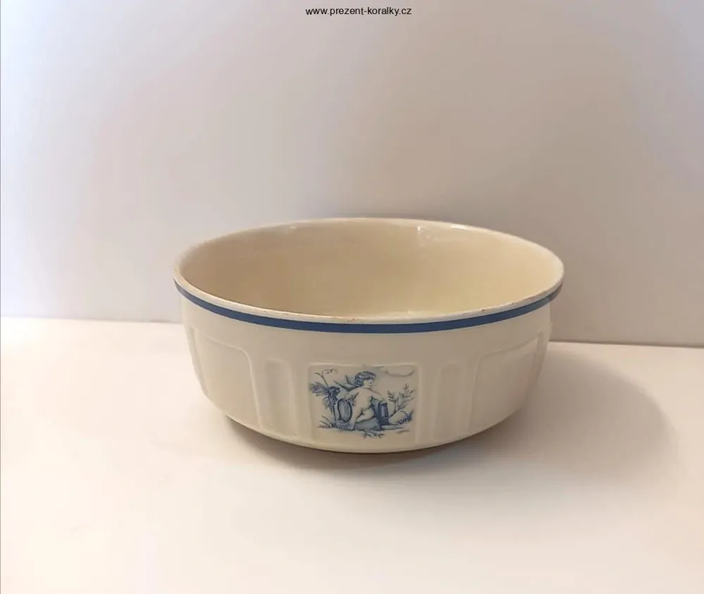 Tato porcelánová miska ČESKÉ VÝROBY má barvu slonové kosti a dekorují ji andílci modré barvy. Miska je vysoká 6,4 cm, její průměr je 15,6 cm. Tato krásná ozdobná miska se hodí do každé domácnosti, je vhodná do myčky i mikrovlnné trouby.
