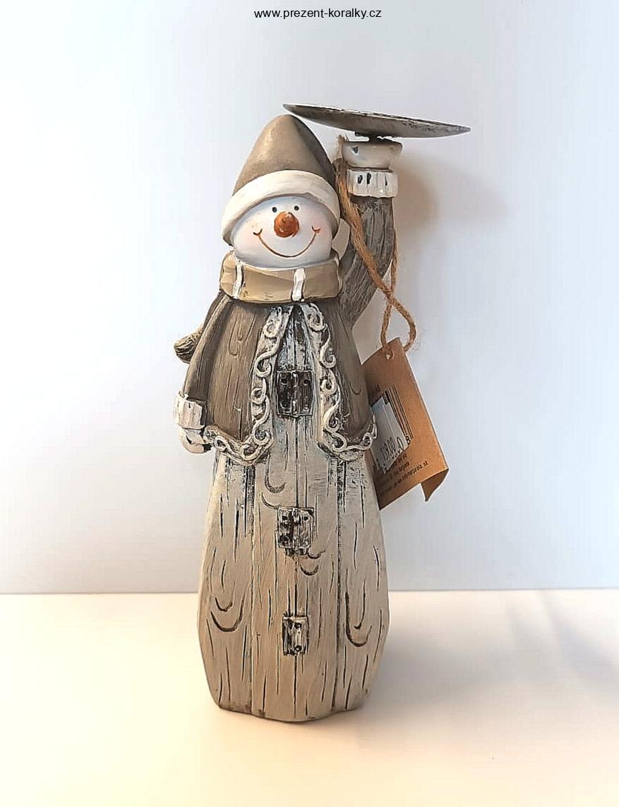 Tato originální dekorace ve tvaru sněhuláka je vyrobená z polyuretanu. Sněhulák je vysoký 20 cm a drží mističku na čajovou svíčku o průměru 5,5 cm. Tento svícen sněhulák je vhodnou zimní dekorací či originálním vánočním dárkem.