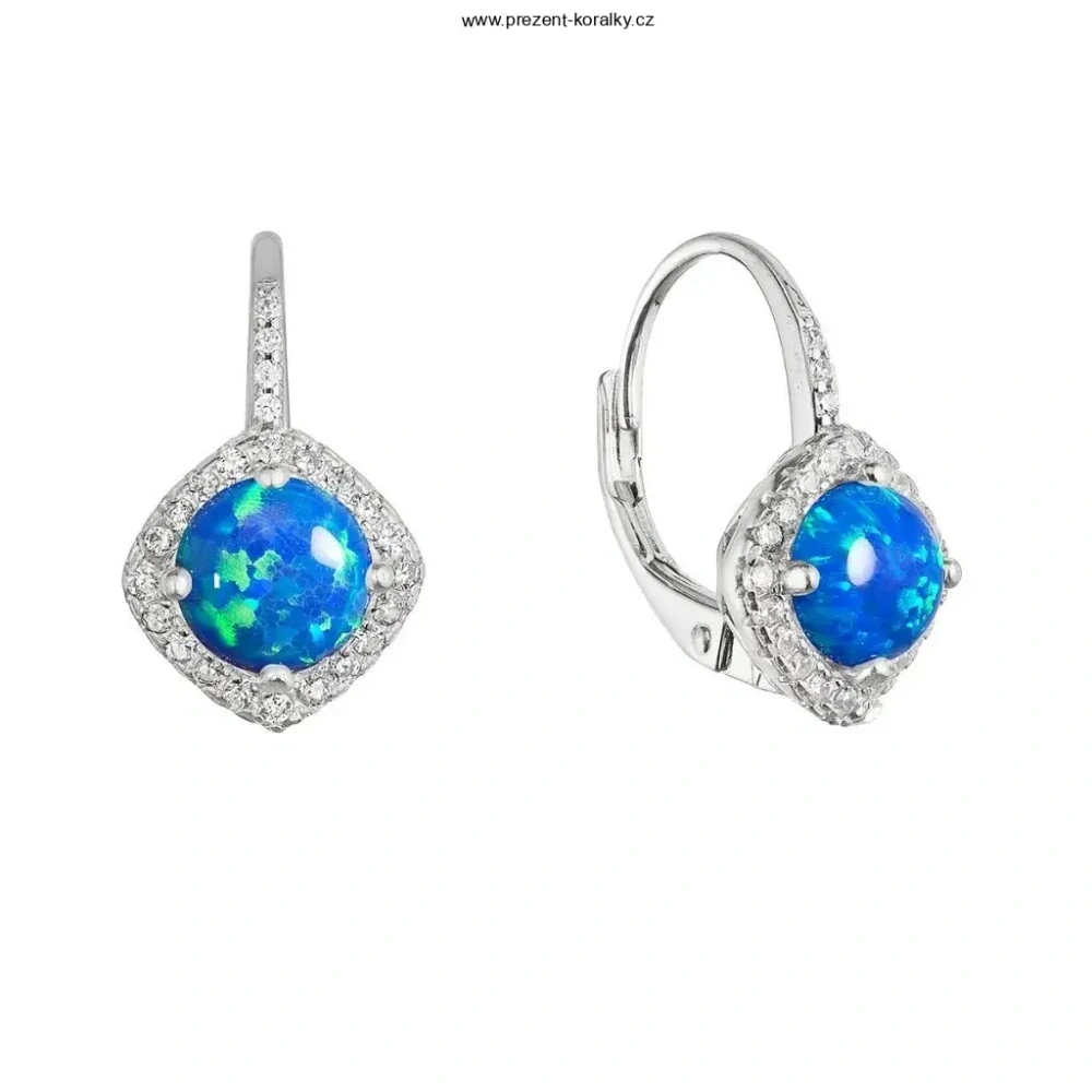 Stříbrné náušnice se syntetickým opálem modré barvy, délka 1,7 cm, šířka 0,8 cm a zapínání je řešeno na zacvaknutí. Materiál: Stříbro s ryzostí 925/1000 (tzv. sterlingové stříbro) Sterlingové stříbro - ideální slitina pro výrobu šperků. Klenotnická slitina stříbra obsahuje 92,5 % ryzího stříbra. Druhý kov (nejčastěji měď) dodává slitině potřebnou tvrdost. Výsledkem je odolný kov, který si zachová barvu a lesk čistého stříbra. Rhodium - platinový kov, který chrání a dekorativně vylepšuje celkový vzhled šperku Krystaly Swarovski - krystalové kameny, které lámou světlo na duhové spektrum, zářivě se lesknou, vyznačují se dokonalým diamantovým brusem a neobsahují olovo Povrchová úprava: Lesk Rhodiování - antioxidační povrchová úprava, povrch kovu je opatřený tenkou vrstvou rhodia, díky tomu jsou šperky odolnější, mají vyšší lesk a nečernají, navíc jsou hypoalergenní (nedráždí pokožku).