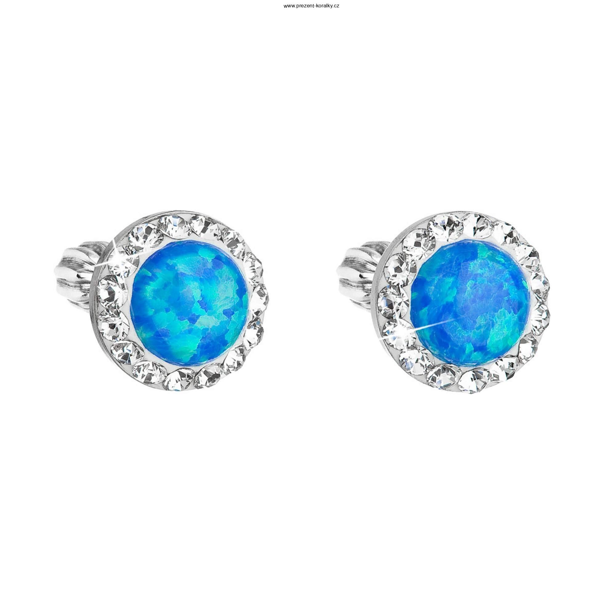 Stříbrné modré opálové náušnice se Swarovski krystaly. Modré stříbrné náušnice jsou zdobeny čirými kamínky a modrým opálem. Šířka náušnic je 0,9 cm a zapínání mají řešeno na puzetku.
