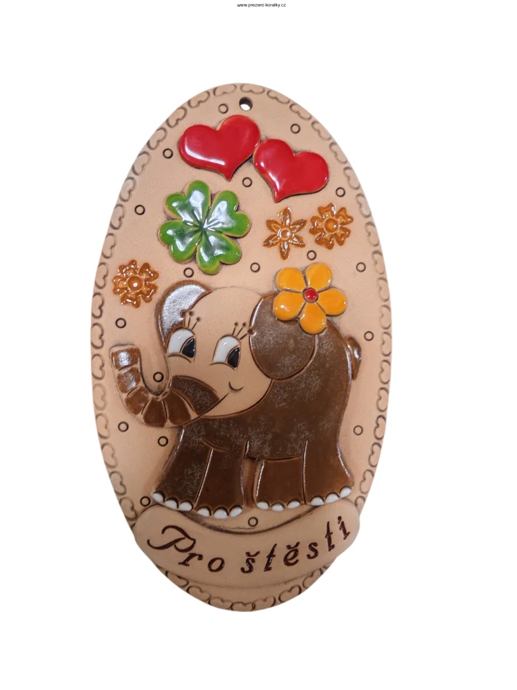 - Keramická destička na zeď "PRO ŠTĚSTÍ", slon
