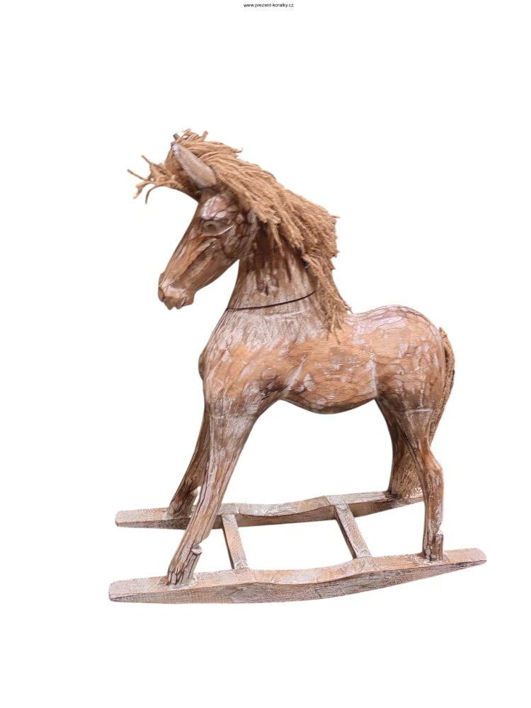 Tato soška houpacího koníka je vyrobena ze dřeva a je laděna do hnědé barvy. Rozměr houpacího koníka je 46 cm x 30 cm x 13,5 cm. Tato dekorace houpacího koníka je vhodnou dekorací do každé domácnosti.