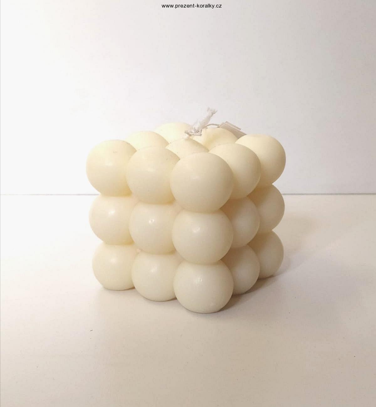 Tato luxusní svíčka je ručě vyrobená ze sóji v české dílně. Svíčka je ve tvaru krychle, která se skládá z jednotlivých "bublinek". Svíčka je veliká 6 cm x 6 cm.
