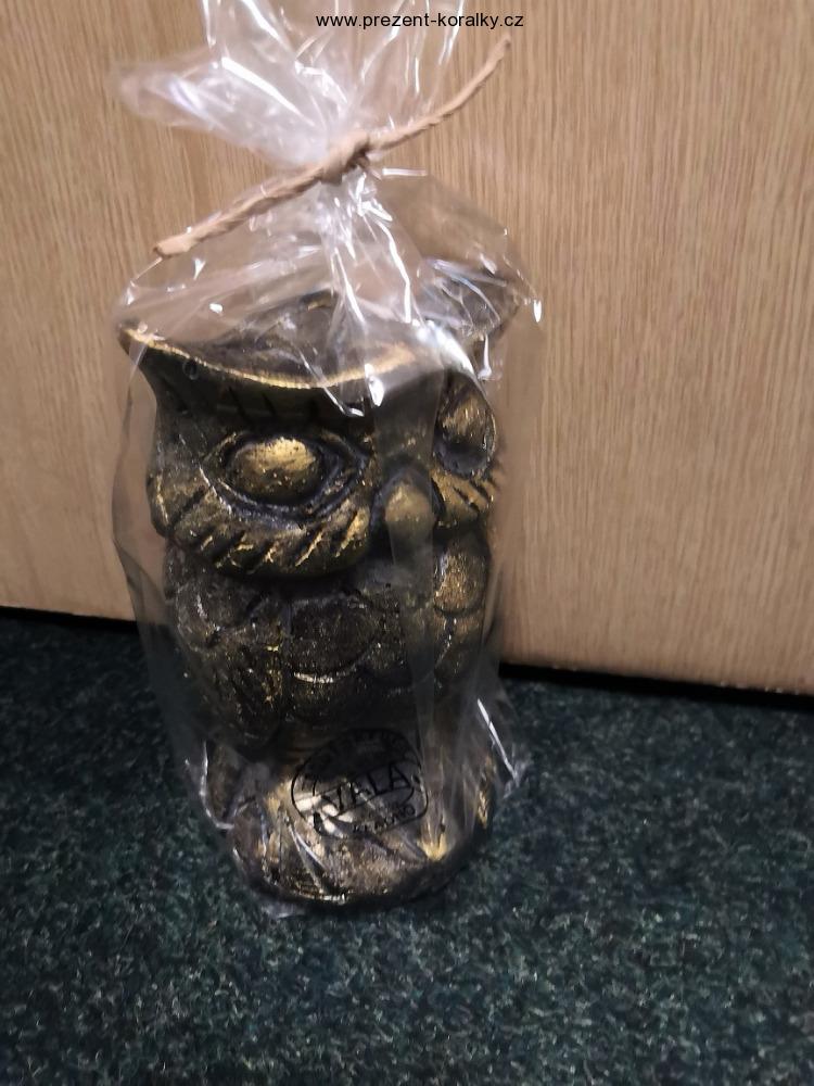 Krásná moderní svíčka ve tvaru sovy je vyrobena z kvalitního vosku z české manufaktury Vála. Svíčka sova je zlaté barvy. Výška svíčky je 15,5 cm a průměr spodku svíčky je 8,5 cm. Tato svíčka zaručeně potěší každého milovníka zvířat.