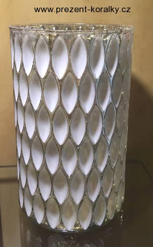 Sklěněný svícen zlato-bílé barvy je vhodný jako dekorace do každého moderního interiéru. Výška svícnu je 19,5 cm a průměr je 12 cm.