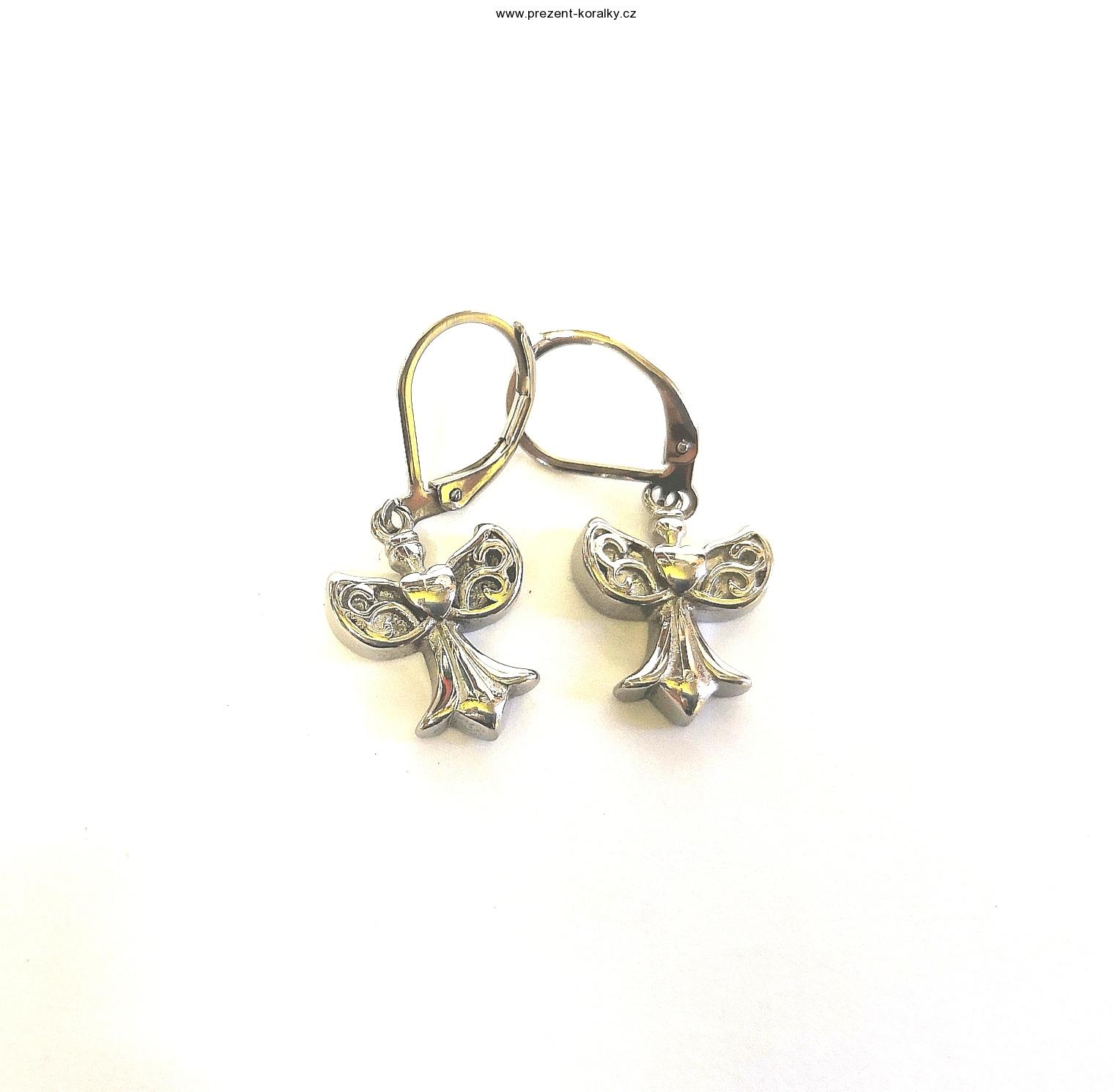 Andělské náušnice jsou vyrobeny z kvalitní chirurgické oceli a jsou stříbrné barvy. Visací náušnice s motivem andílka, zapínání mají řešené na zaklapnutí. Celková délka náušnic je 3 cm Tyto krásné náušnice zaručeně potěší každou ženu či dívku.