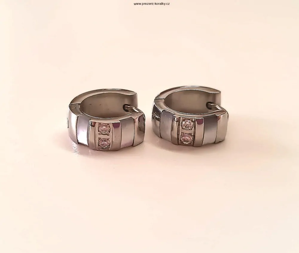 Náušnice jsou vyrobené z chirurgické oceli a jsou rhodiované (nečernají), jsou zdobené SW kamínky. Náušnice jsou visací a zapínání mají řešené na zacvaknutí. Průměr náušnic s kamínky je 1,4 cm. Tyto ocelové náušnice potěší každou ženu či dívku.