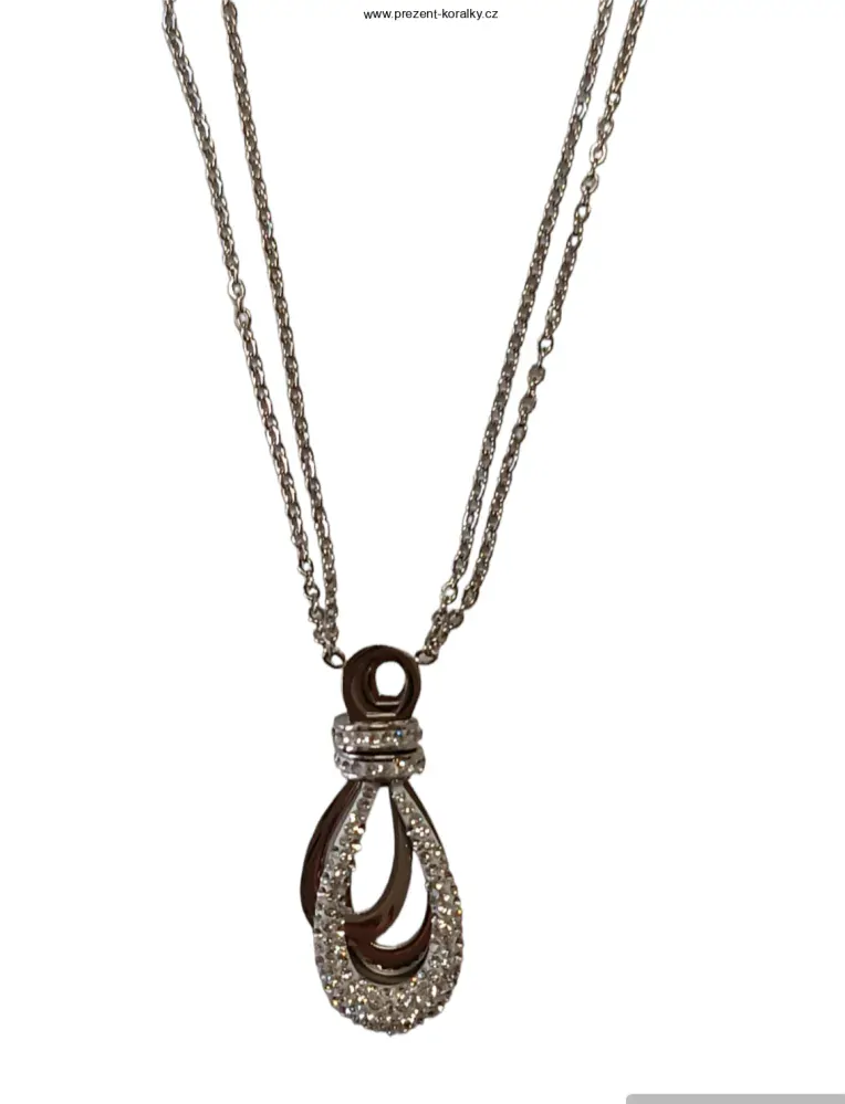 Tento originální přívěsek je vyrobený z chirurgické oceli a je zdobený S kamínky čiré barvy. Rozměr přívěsku je 3,6 cm x 1,6 cm, řetízek je dlouhý 39 cm + prodlužovací řetízek 5,5 cm. Tento zářivý náhrdelník se SW krystalky ozdobí každou ženu či dívku.