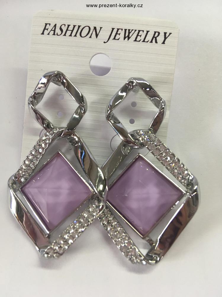 - Náušnice s fialovým a čirým kamenem bižuterie