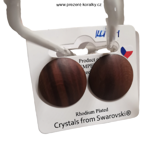 Originální dřevěné náušnice vyrobené z bižuterie jsou bez obsahu niklu a jsou rhodiované. Průměr náušnic je 2 cm a zapínání mají řešené jako klipsy. Tyto náušnice zaručeně potěší každou ženu či dívku.