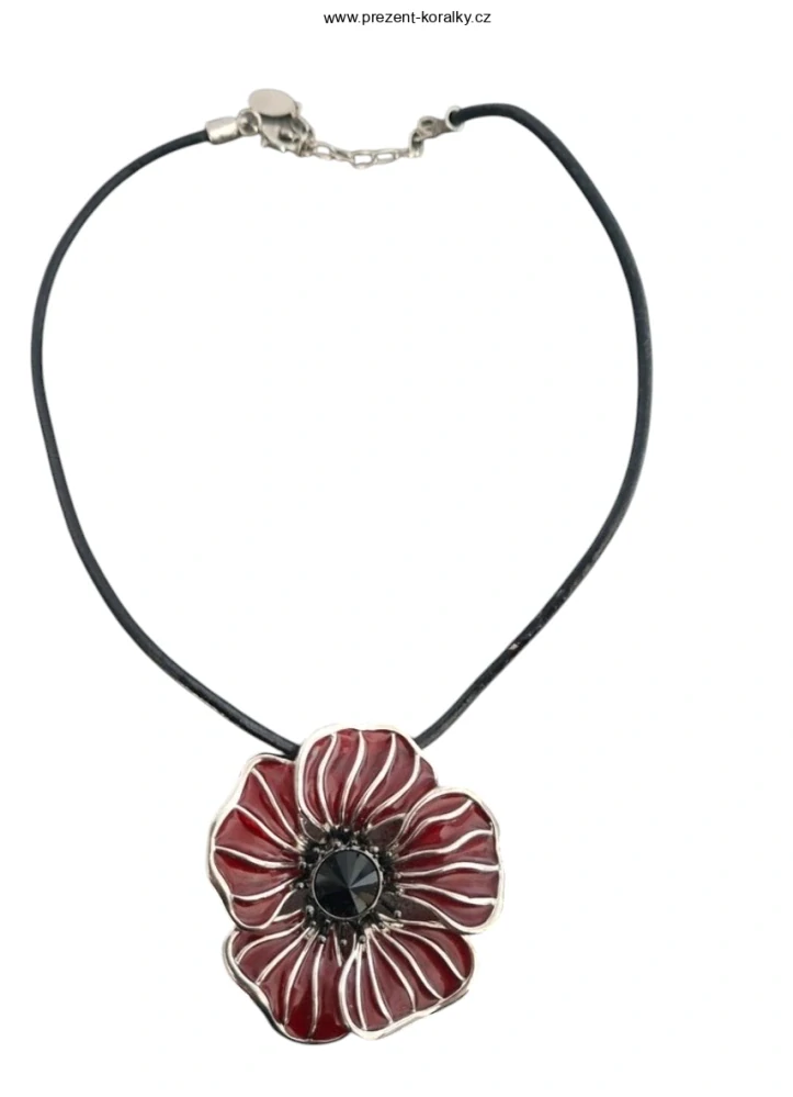 Řetízek s vlčím mákem je vyroben z kvalitní bižuterie je bez obsahu niklu a je rhodiovaný. Řetízek je dlouhý 40 cm + 7 cm prodlužovací řetízek a zapínání je řešeno na karabinku. Přívěsek ve tvaru vlčího máku má červenou barvu a jeho průměr je 6 cm. Tento krásný řetízek s vlčím mákem zaručeně potěší každou dívku.