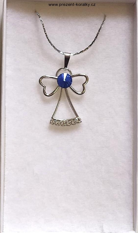 - Náhrdelník z bižuterie - anděl s modrým SW krystalem