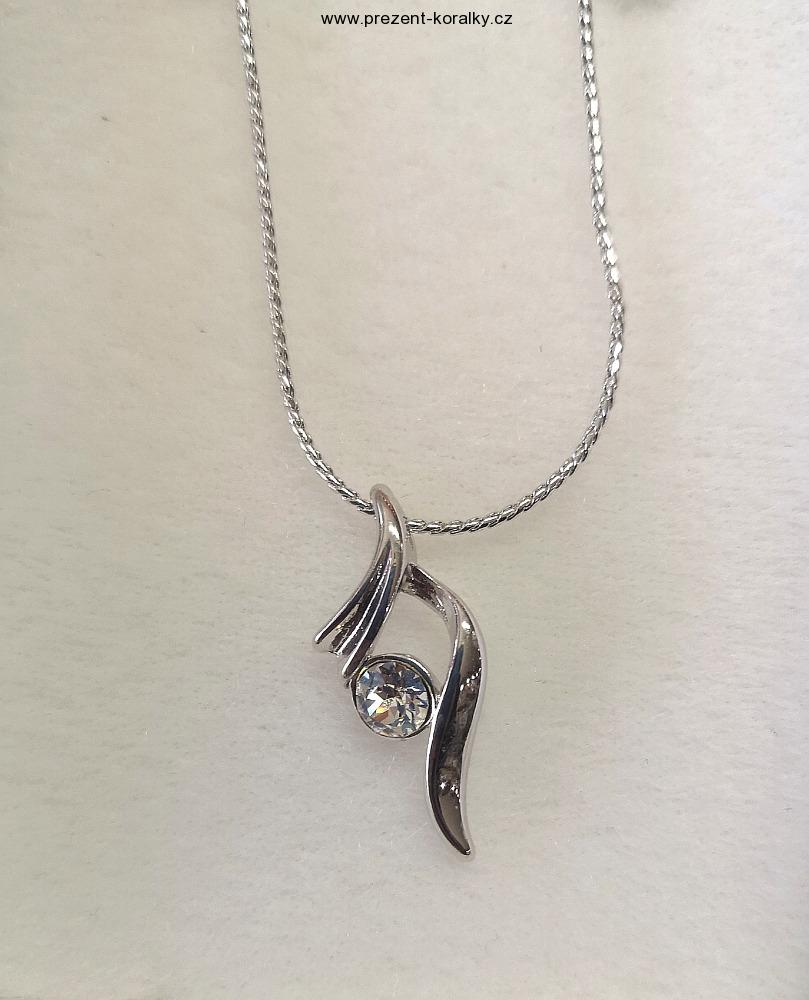 Zářivý náhrdelník je vyroben z bižuterie bez obsahu niklu. Přívěsek je veliký 2,5 cm x 1 cm a je zdobený Swarovski krystalkem čiré barvy. Délka řetízku je 38 cm + 6 cm prodlužovací řetízek. Zapínání je řešeno na karabinku. Tento krásný řetízek zaručeně potěší každou ženu či dívku.