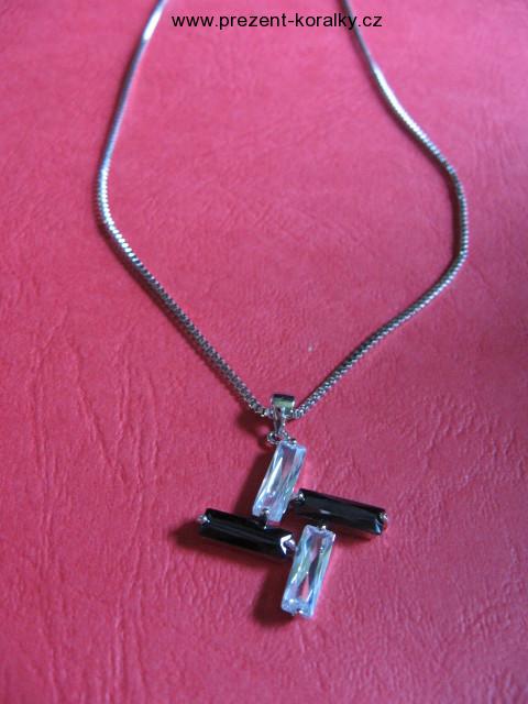 Zářivý náhrdelník je zdoben čtyřmi Swarovski krystaly čiré a černé barvy. Délka řetízku je 40 cm, zle prodloužit od 5 cm. Bižuterie.