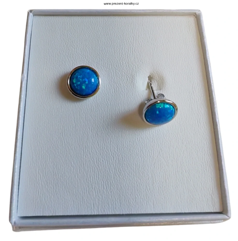 Stříbrné modré opálové náušnice se Swarovski krystaly. Modré stříbrné náušnice jsou zdobeny modrým opálem. Šířka náušnic je 1 cm a zapínání mají řešeno na puzetku.