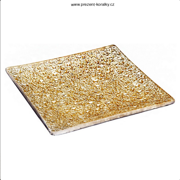 Tento dekorační tácek je vyrobený ze skla a je zlaté barvy. Zlatý tácek pod svíčku je veliký 12 cm x 12 cm. Tento zářivý tácek se hodí do každé domácnosti.