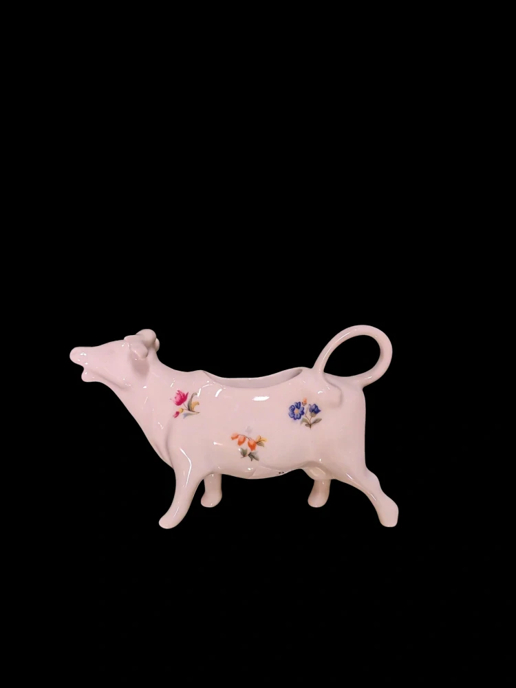 Tato mlékovka ve tvaru krávy je vyrobena v ČESKÉ keramické dílně. Mlékovka má bílou barvu s kytičkama. Objem mlékovky je 70 ml, široká je 10 cm. Tato nádoba na mléko zaručeně potěší každého.