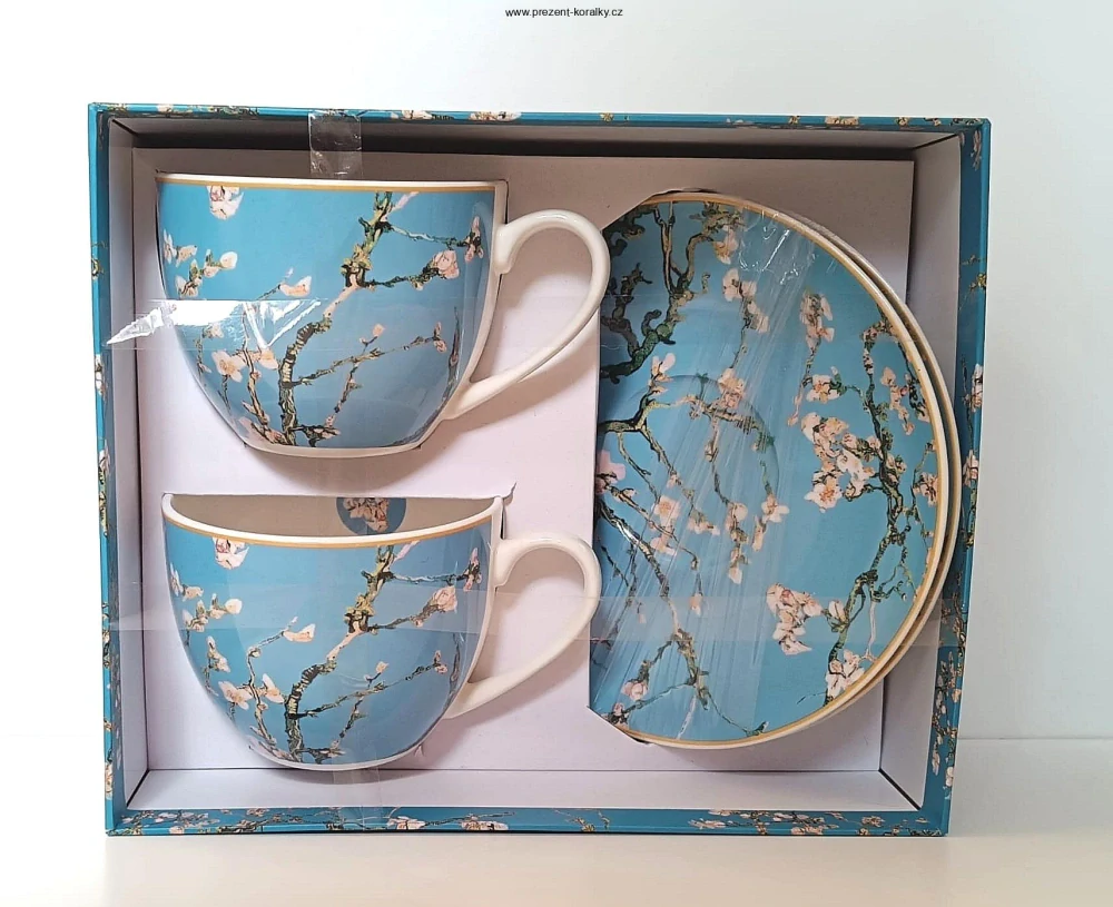 Sada hrníčků o objemu 250 ml s podšálky o průměru 15,3 cm s krásným motivem kvetoucích stromů sakury. Vhodná do myčky i do mikrovlnné trouby. Sada je často nazývaná také jako přátelská sada a dodáváme v dárkové kazetě téhož motivu.