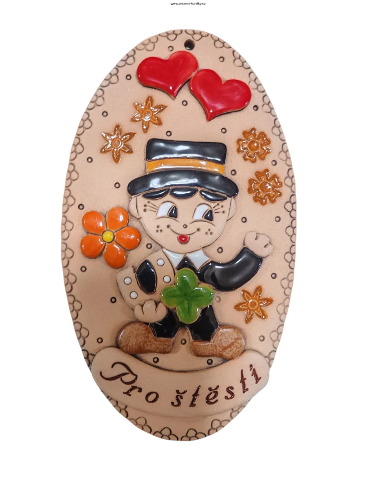Keramická destička na zeď "PRO ŠTĚSTÍ", kominík