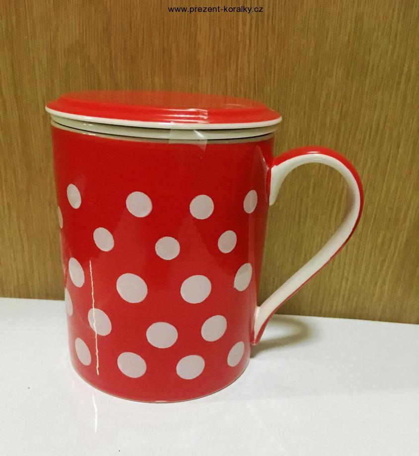 Porcelánový hrnek "byliňák" - hrnek s keramickým sítkem a pokličkou na bylinky. Hrnek je laděn do červené a je zdoben bílými puntíky. Objem 390 ml. Hrnek je vysoký 11 cm i s pokličkou a jeho průměr je 9 cm. Vhodné do myčky i mikrovlnné trouby. Tento krásný hrnek zaručeně potěší každého milovníka čajů.