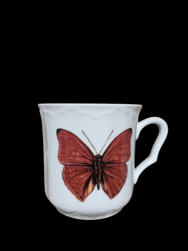 - Porcelánový hrnek s červeným motýlem