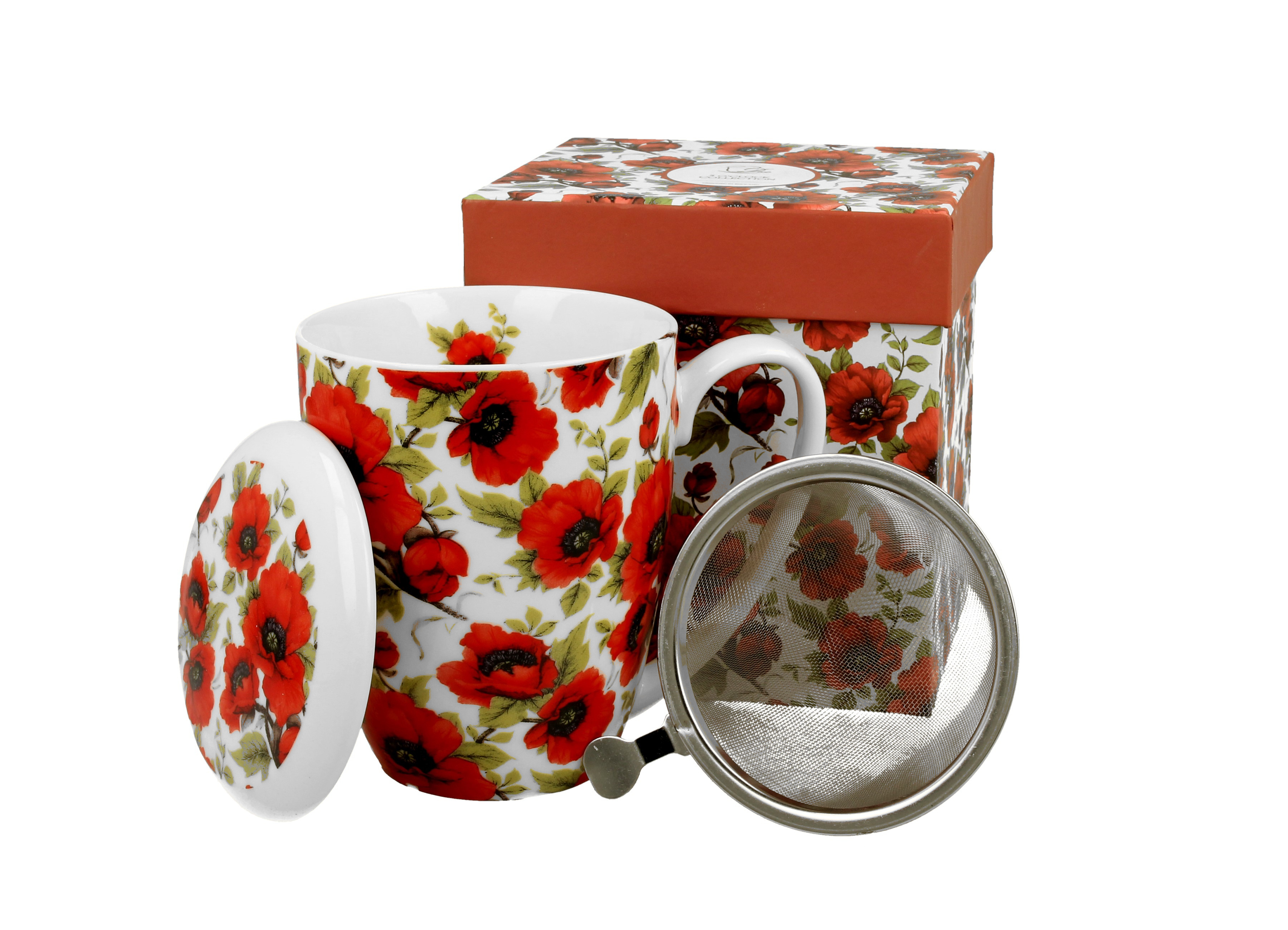 Porcelánový hrnek na bylinky z vysoce kvalitního porcelánu o objemu 380 ml je zdoben motivem máku. Součástí sady hrnku na bylinky je hrnek, kovové sítko na Váše oblíbené bylinky a poklička. Výška hrnku je 10 cm včetně pokličky, průměr je 8 cm.