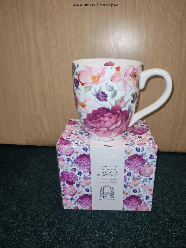 Maxi hrnek s motivem květin a dárkovou krabičkou. Veliký hrnek je vyroben z kvalitního porcelánu. Rozměry: průměr 12 cm, objem 1000 ml, výška 13,5 cm. Hrnek je vhodný pro velké milovníky čaje, může do myčky i mikrovlnné trouby.