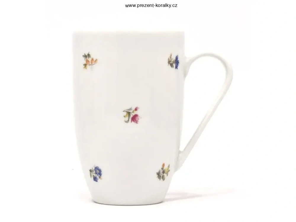 Porcelánový hrnek s motivem květin je vyrobený v české porcelánce. Hrnek má objem 440 ml, výška je 13 cm, průměr 8 cm. Tento porcelánový hrnek je vhodný do myčky i mikrovlnné trouby. Hrníček je vhodný na teplé i studené nápoje.