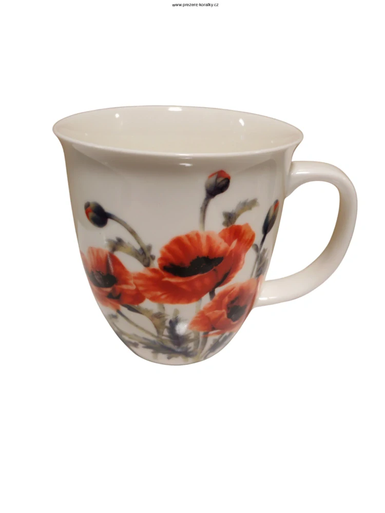 Porcelánový hrnek s motivem vlčího máku. Hrnek má objem 1000 ml, výška je 12,2 cm, průměr 11,2 cm. Hrnek je vhodný do myčky i do mikrovlnné trouby. Hrnek zaručeně potéší každého milovníka čaje.