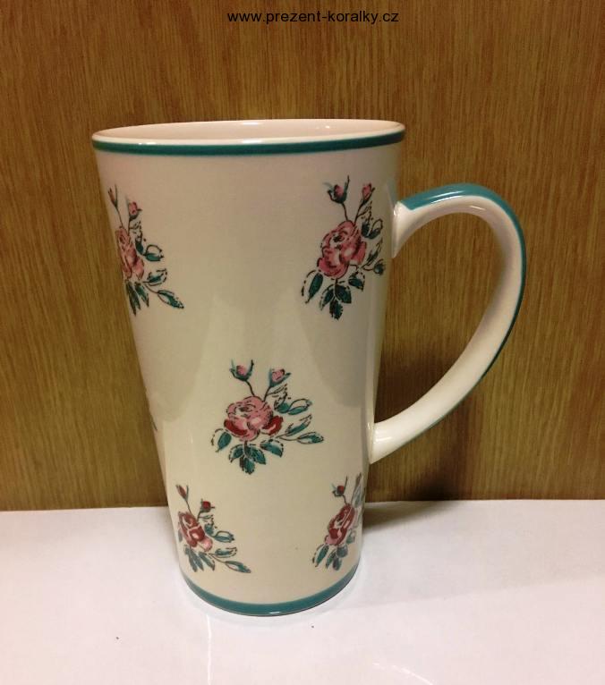 Porcelánový bílo-modrý hrnek s motivem růžiček. Objem hrnku je 470 ml. Výška 15 cm a horní průměr hrnku je 8,5 cm. Vhodné pro myčky a mikrovlnné trouby. Tento hrnek je vhodný jako dárek pro každého milovníka čaje či kávy.