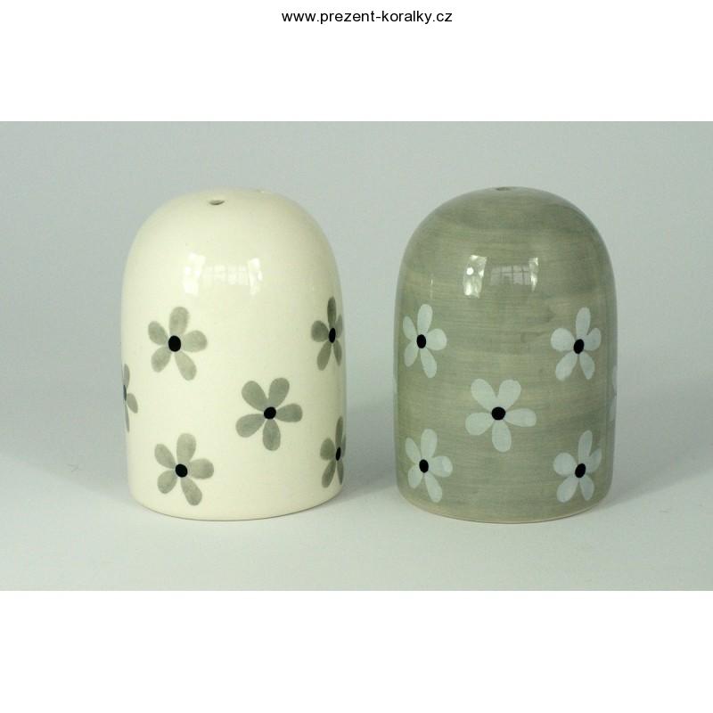 Porcelánová sada pepř/ sůl s květinovým motivem. Rozměry: 7 cm (výška); 5 cm (průměr). Tato sada se hodí na každý stůl. Vhodné pro myčky.